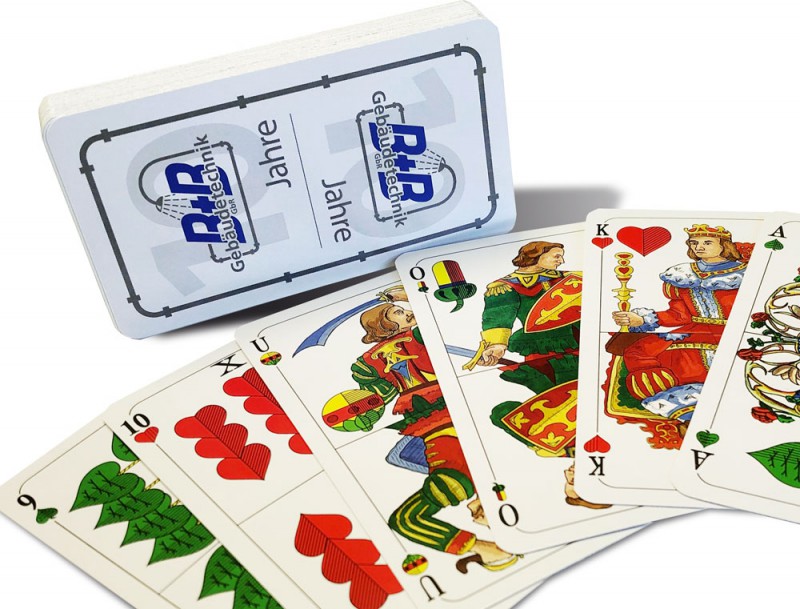 Skat, Rommé, Poker, Doppelkopf & Co individuell drucken. Bei uns findest du alle klassischen, europäischen Kartenspiele bereit für deine Personalisierung. Entscheide selbst, on du nur die Rückseite mit einem Logo oder eigenen Design personalisieren möchtest oder vielleicht ein komplett eigenes Design für die Klassiker verwenden willst.